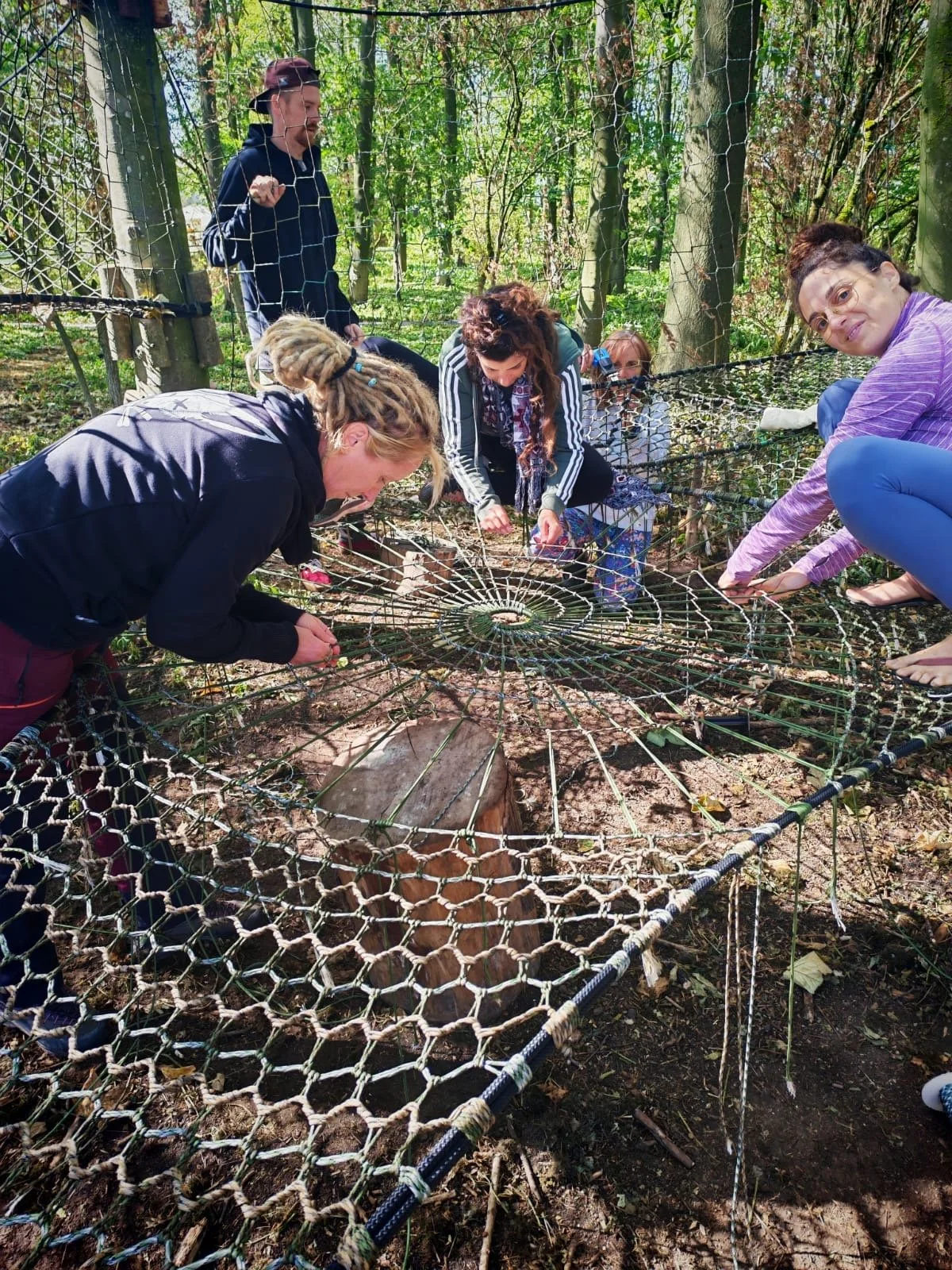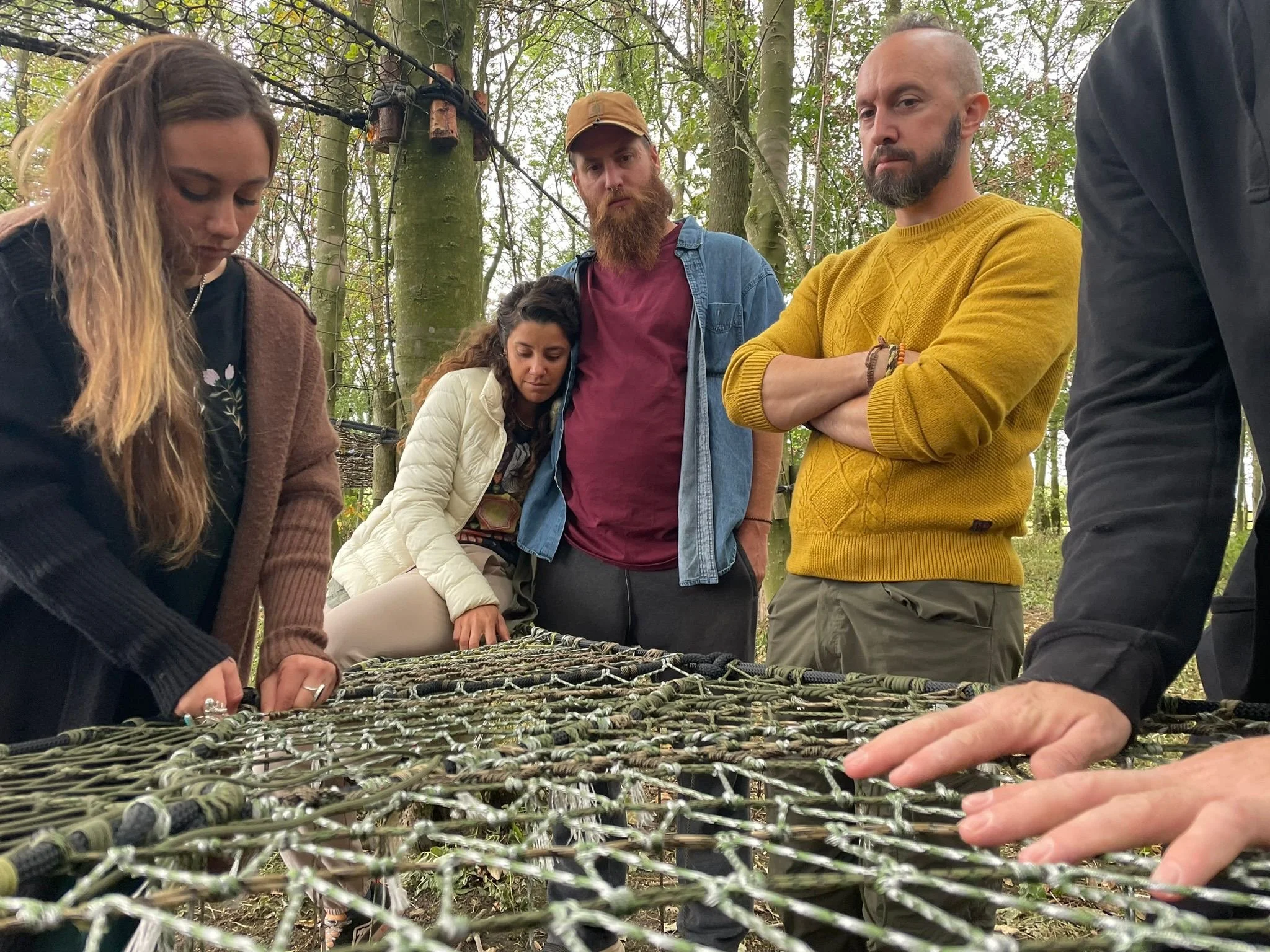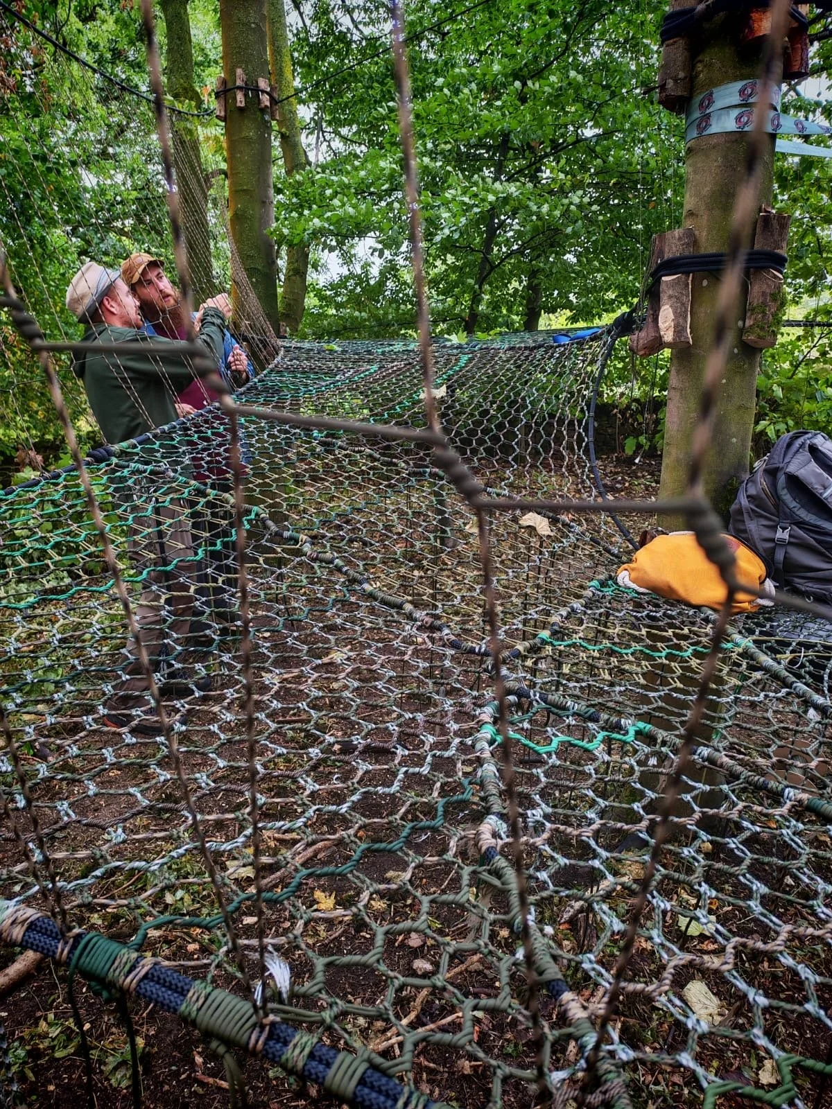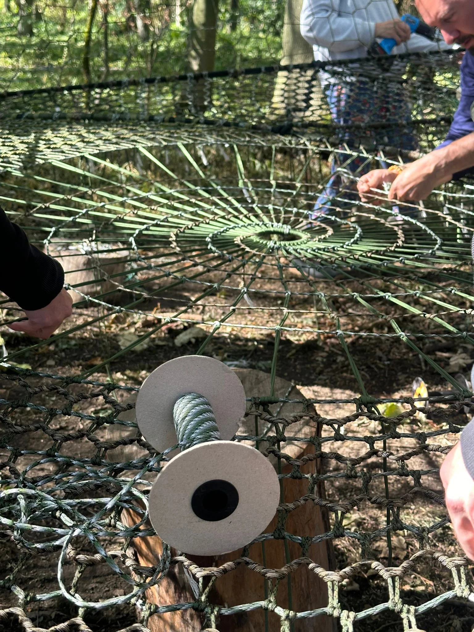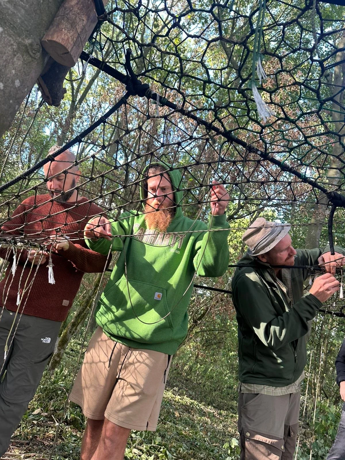 Across 3,000 acres of wild and restorative landscape, we brought our net-weaving art to life in the heart of Broughton Sanctuary. These multi-level hangouts were handwoven during our Weaving Magic masterclasses — designed to help people connect with nature in a playful and therapeutic way. Each piece was crafted to blend seamlessly into the landscape, offering space for reflection, movement, and community while keeping our impact on the land and wildlife minimal.