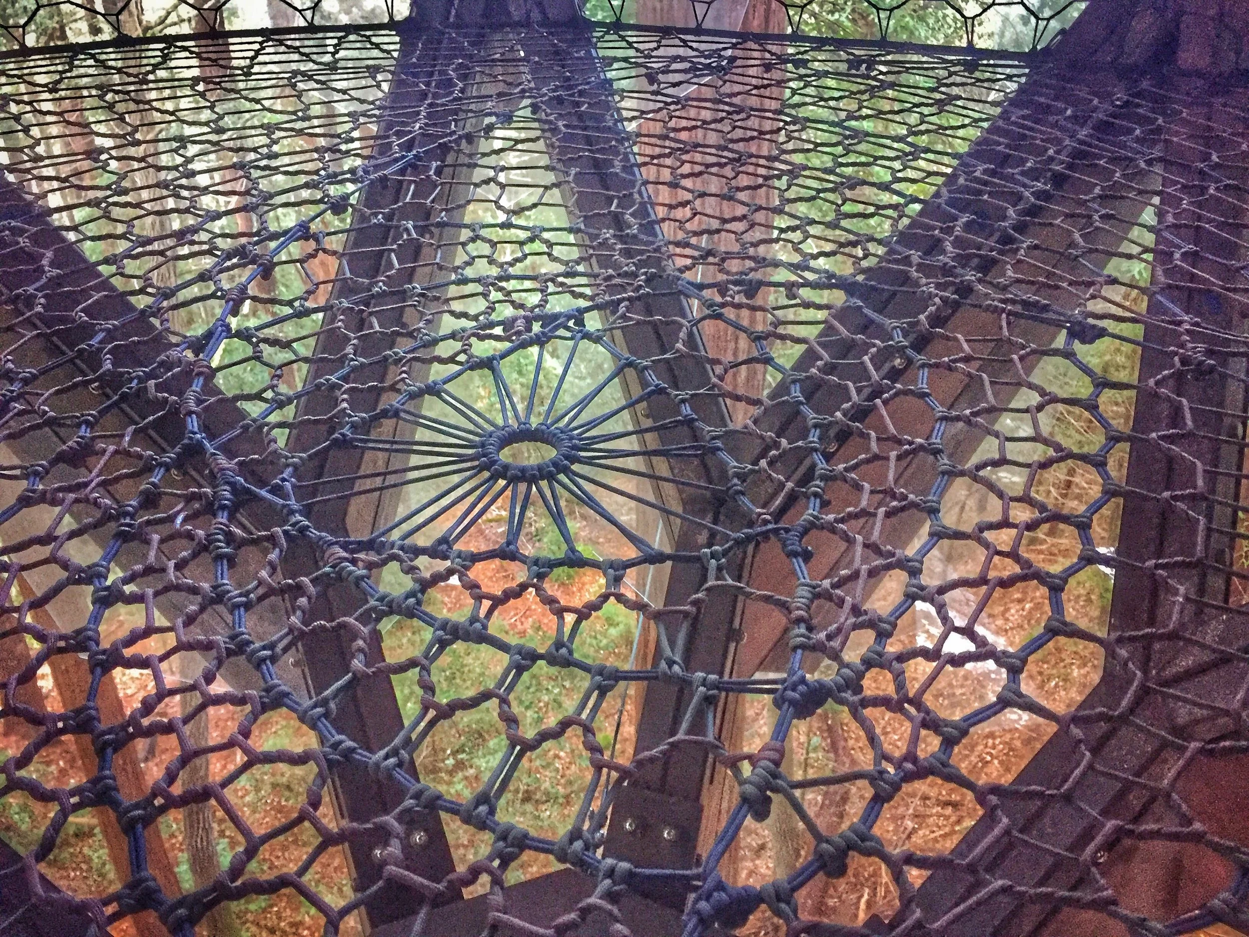 Built during the covid summer of 2020, this large net installation for Wiley's Boulder Resort is the first fully wheelchair accessible TreeNet we've ever created. With a beautiful redwood ramp that meanders through the hillside of boulders and a plexiglass floor for the waterfall soon to come) this one-of-a-kind, webbed relaxation spot is ideal for anyone and everyone. Suspended 30 ft high in the pines, there’s no other wheelchair-friendly environment like it.